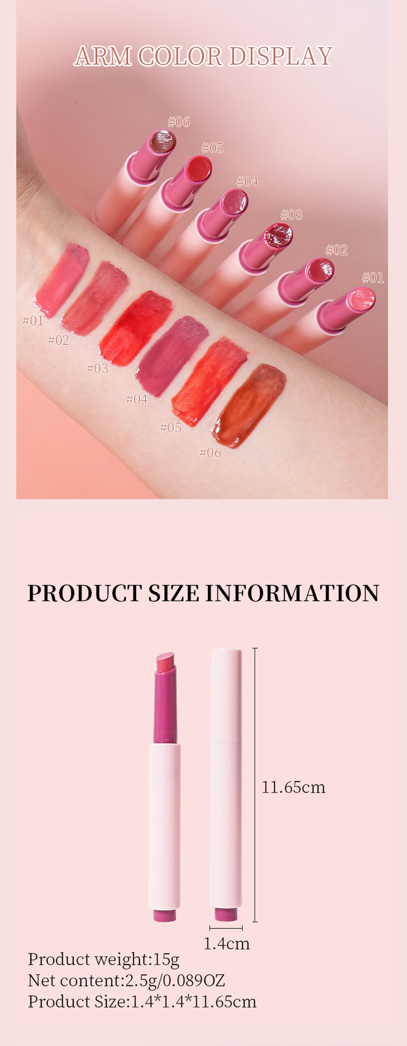 Este producto de maquillaje de labios, disponible para personalización al por mayor y en lotes pequeños, viene en dos formatos: un lápiz labial hidratante a presión y un esmalte labial hidratante. Disponible en seis tonos, cada uno con un espejo incorporado, reduce las líneas de los labios y los rellena, lo que lo hace adecuado para mayoristas de belleza que se abastecen, marcas que realizan pruebas en lotes pequeños y personalización personalizada. Los seis tonos cuidadosamente seleccionados cubren tonos populares como el rosa nude cotidiano, la suave pasta de frijoles y la vibrante mandarina, atendiendo a una variedad de tonos de piel y looks de maquillaje. El diseño del lápiz labial a presión permite un fácil control de la aplicación, y su textura suave e hidratante lo hace perfecto para superponerlo con el esmalte labial hidratante para crear un aspecto labial más completo y voluminoso al mismo tiempo que nutre profundamente y minimiza las líneas labiales. La fórmula micro-plumping también añade volumen y volumen a los labios. El producto viene con un espejo incorporado, eliminando la necesidad de herramientas para retoques, garantizando tanto practicidad como comodidad. Está disponible la personalización en lotes pequeños, con logotipos de marca y detalles de embalaje personalizables. Los mayoristas que compran al por mayor disfrutan de un suministro estable, mientras que las marcas emergentes también pueden gestionar los costos. Ya sea un comerciante de belleza que se abastece para las ventas, una marca que amplía su línea de productos de maquillaje de labios o lo personaliza como regalo o beneficio de membresía, equilibra el cuidado hidratante de la piel, los efectos de maquillaje duraderos y la flexibilidad de personalización.